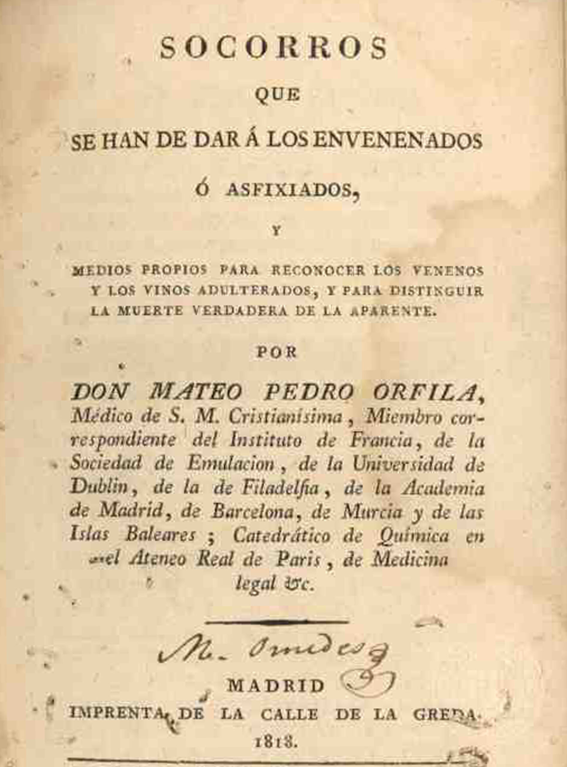 Socorros que se han de dar a los envenenados o asfixiados y medios propios para reconocer los venenos y los vinos adulterados, y para distinguir la muerte verdadera de la aparente