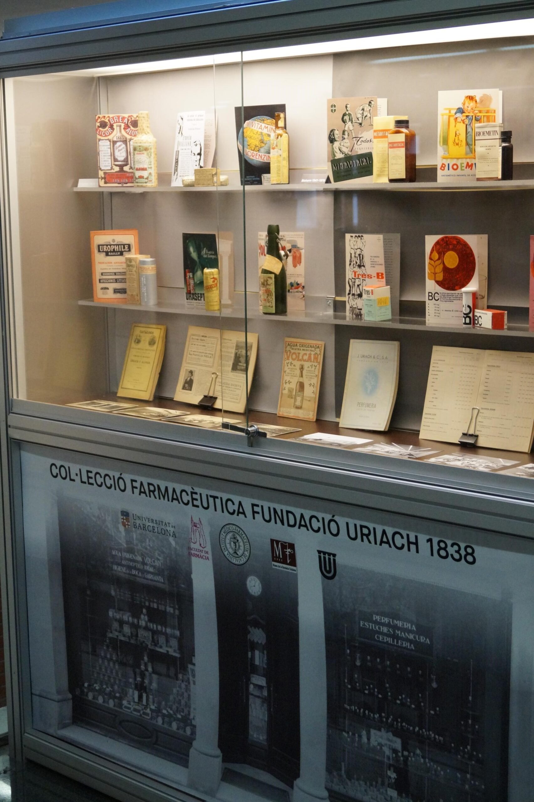 The exhibition, held at the Faculty of Pharmacy of the University of Barcelona, presents, through objects and advertising materials from the Uriach Foundation Archive, the fascinating history and evolution of the century-old company Uriach, from its origins in the mid-19th century to its transformation into a multinational enterprise.