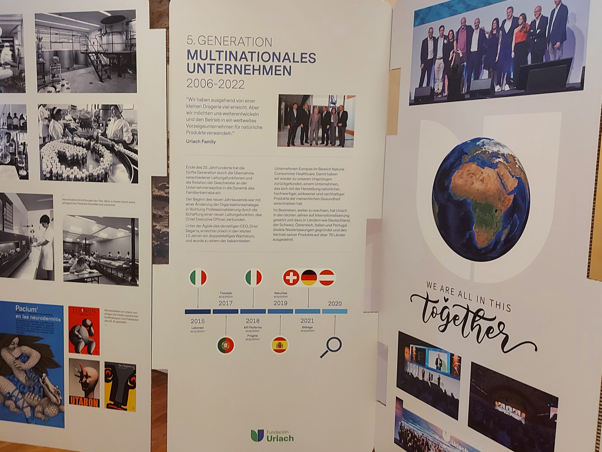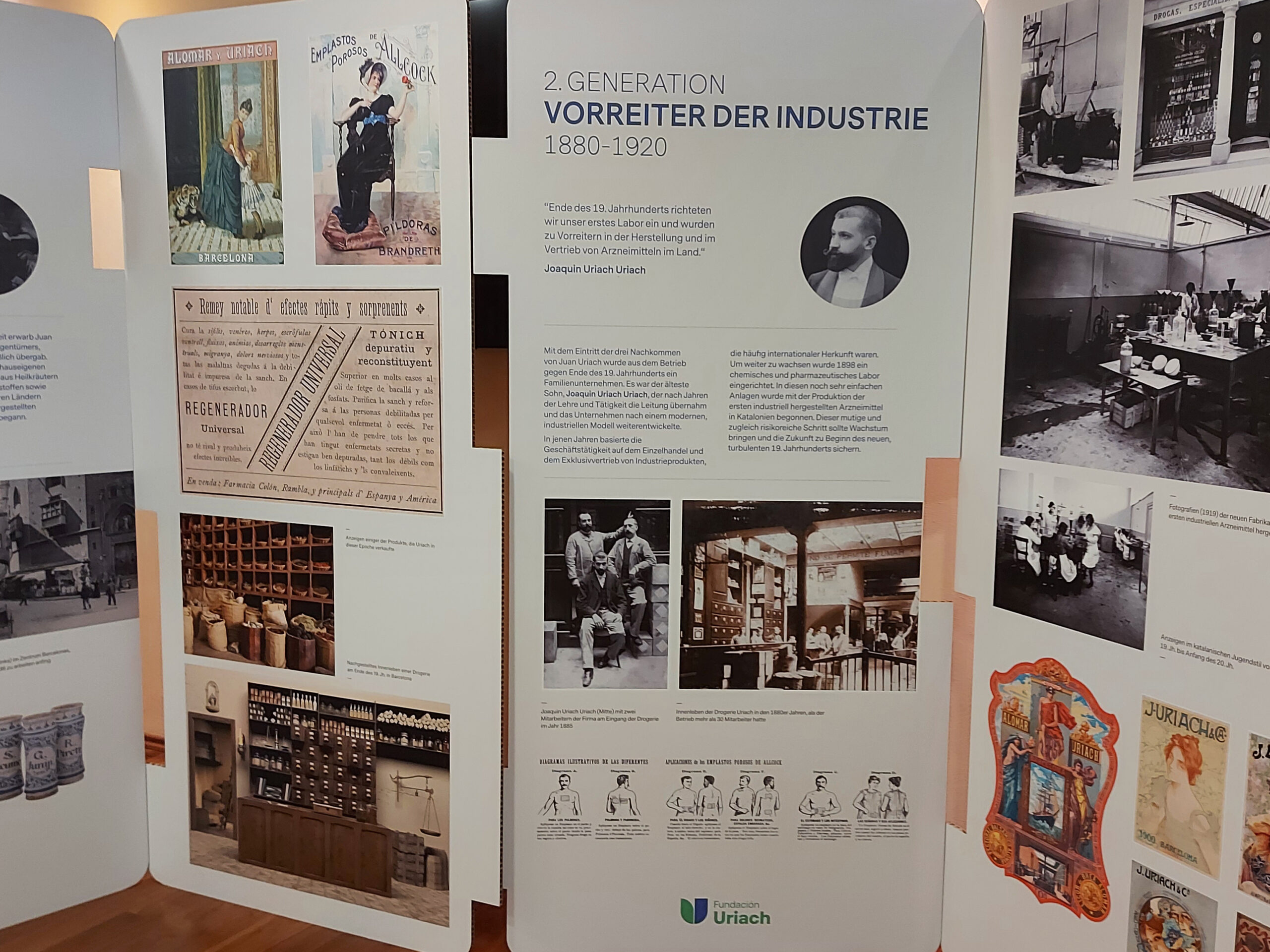 Following Uriach’s acquisition of the company Sidroga (Bad Ems, Germany), the Foundation organized an exhibition to introduce the new collaborators to the history of the company, from its humble beginnings in 1838 to the present day.