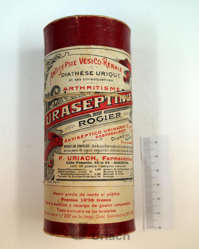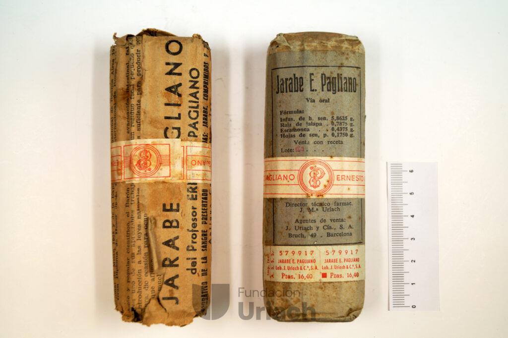 Desde los orígenes de Uriach en 1838, los productos creados y distribuidos por la compañía han evolucionado significativamente. Al principio, se trataba de remedios naturales vendidos para tratar enfermedades como la gripe, la tos y los problemas digestivos, utilizando formas farmacéuticas sencillas como polvos, jarabes, tónicos y extractos líquidos. Estos productos se presentaban en frascos y envoltorios simples que habitualmente no incluían información precisa ni regulada. Con la industrialización y el avance de la química, durante el siglo XX surgieron medicamentos más sofisticados, con nuevas formas farmacéuticas y una información cada vez más regulada y específica. Esta colección de productos permite observar la evolución de las enfermedades, los ingredientes, las formas farmacéuticas y la información técnica a lo largo del tiempo.
