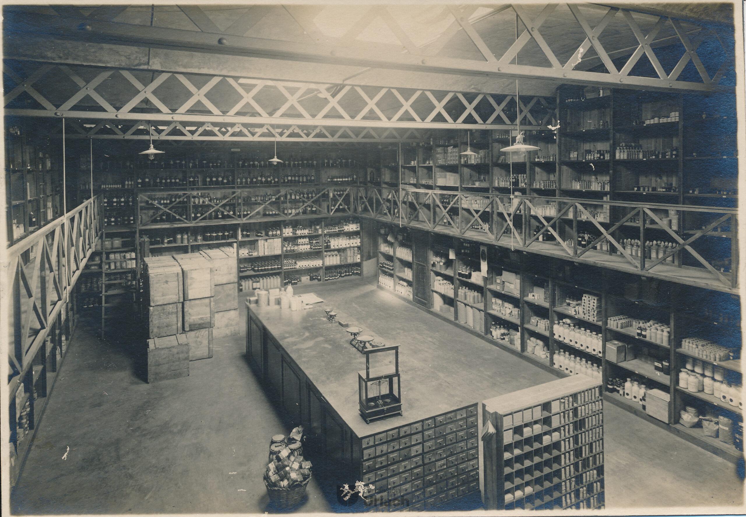 Este conjunto de imágenes nos permite conocer cómo era y a qué se dedicaba una empresa como Uriach a inicios del siglo XX a través de instantáneas de la droguería, oficinas, laboratorios y almacenes, entre otros.