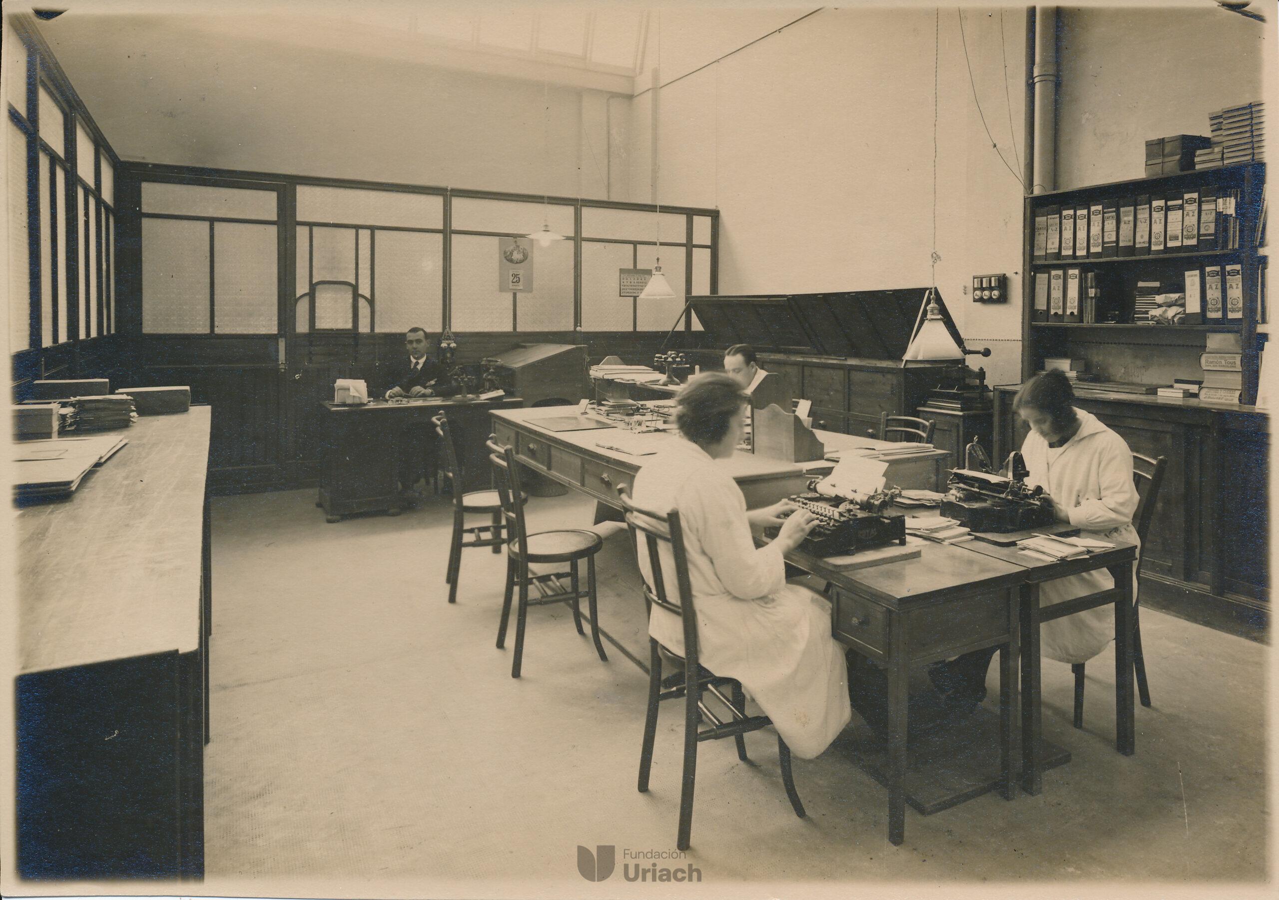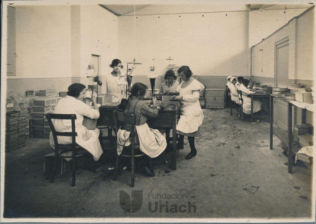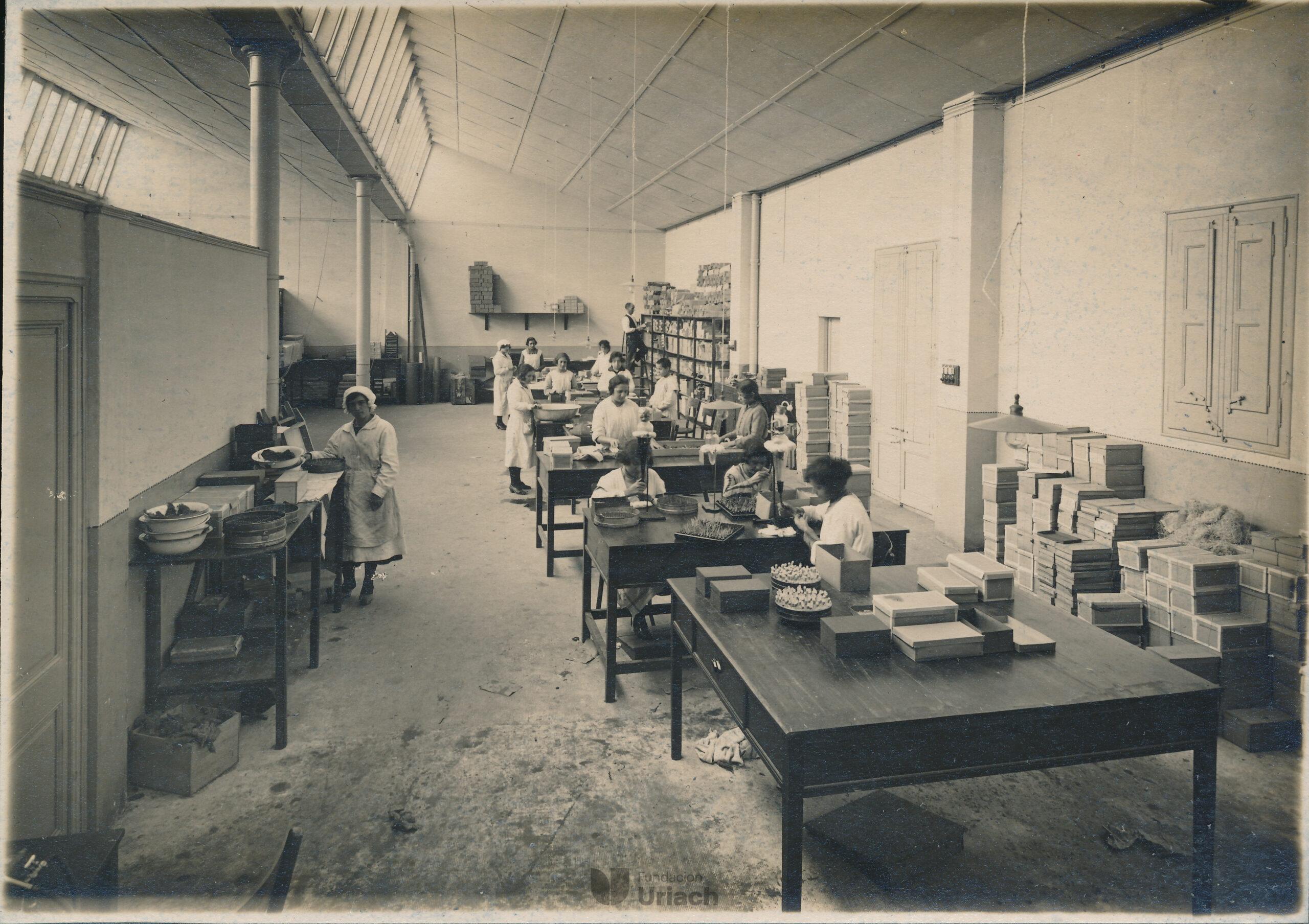 En 1919, Uriach decidió trasladar su sede a unas nuevas instalaciones, más grandes y eficientes, en la zona más moderna e industrial de la ciudad de Barcelona, el Eixample. Para inmortalizar este importante acontecimiento se organizó una sesión fotográfica que dio lugar a este conjunto de imágenes, posibles gracias a la evolución de las nuevas cámaras fotográficas portátiles, construidas con madera, metal y cuero, que utilizaban fuelles para el enfoque, lentes de vidrio y obturadores mecánicos simples y un trípode, necesario para garantizar la estabilidad y la nitidez de las imágenes, especialmente en condiciones de poca luz en espacios interiores.