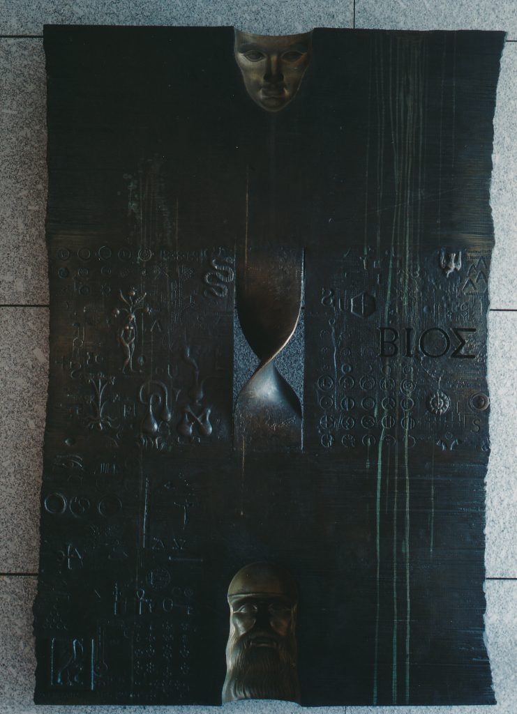 Escultura en bronce que representa, de manera alegórica, elementos relacionados con la salud provenientes de diferentes países y culturas. Una obra creada para su exhibición en las instalaciones de la compañía, que conecta a Uriach con el arte, la medicina, la química, y con el hombre y la mujer.
