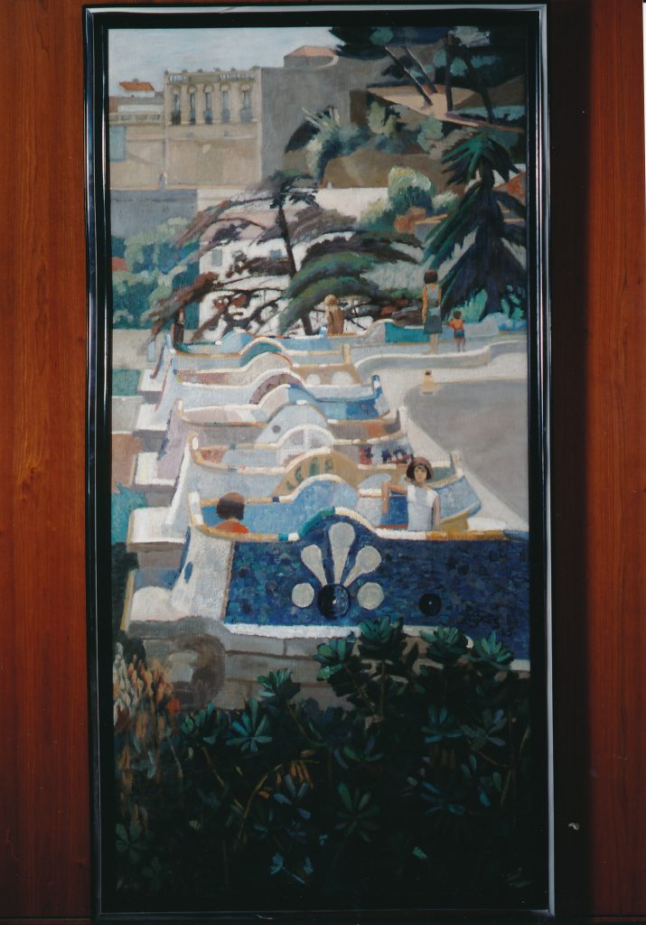 Parc Güell, 1967 (óleo)Representación del Parc Güell de Barcelona de la mano de uno de los máximos exponentes de la vanguardia española de los años cincuenta. Un estilo que el autor fue variando con el tiempo hacia el informalismo y el figurativismo. En el primer plano de la obra se ve a la esposa del pintor.